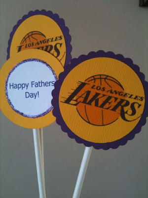 By now most of you know that the Los Angeles Lakers won the NBA championship!! Woohoo! Go Lakers!! Ok, enough of that! This Sunday is Father's Day and to celebrate we are having a BBQ for my hubby, father in-law and hubby's Uncles. I decided to make it a Lakers theme (my hubby's favorite basketball team) and how perfect it works out, considering they just won. I'm not doing anything too fancy but I did start working on these adorable Lakers cupcake toppers. They're still in the works but here is a sneak peek. Check em' out!